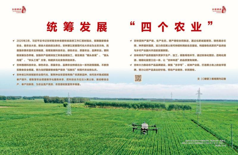 ◇2025年2月,習(xí)近平總書記在聽取吉林省委和省政府工作匯報時指出,保障國家糧食安全,是農(nóng)業(yè)大省、糧食大省的政治責(zé)任。吉林要以發(fā)展現(xiàn)代化大農(nóng)業(yè)為主攻方向,完善強農(nóng)惠農(nóng)富農(nóng)支持制度,統(tǒng)籌發(fā)展科技農(nóng)業(yè)、綠色農(nóng)業(yè)、質(zhì)量農(nóng)業(yè)、品牌農(nóng)業(yè)。要積極發(fā)展生態(tài)養(yǎng)殖,加強農(nóng)產(chǎn)品精深加工和食品細(xì)加工,做足做活“糧頭食尾”、“畜頭肉尾”、“農(nóng)頭工尾”文章,構(gòu)建多元化食物供給體系。