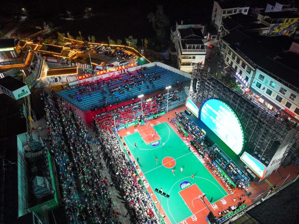 2025年10月12日,全國和美鄉(xiāng)村籃球大賽(“村BA”)總決賽在貴州省臺(tái)江縣臺(tái)盤村開賽。新華社發(fā)(袁福洪攝)