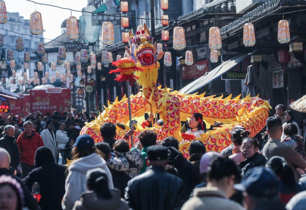 2026年2月8日,游客在浙江壽昌古鎮(zhèn)老街上觀看傳統(tǒng)舞龍表演。近期,浙江省建德市壽昌古鎮(zhèn)舉辦傳統(tǒng)民俗迎新春活動(dòng),民俗踩街、舞龍舞獅、馬年主題燈展等活動(dòng),吸引八方游客前來(lái)體驗(yàn)古鎮(zhèn)傳統(tǒng)年味,進(jìn)一步激活新春消費(fèi)市場(chǎng),為當(dāng)?shù)匚穆媒?jīng)濟(jì)發(fā)展注入新動(dòng)能。