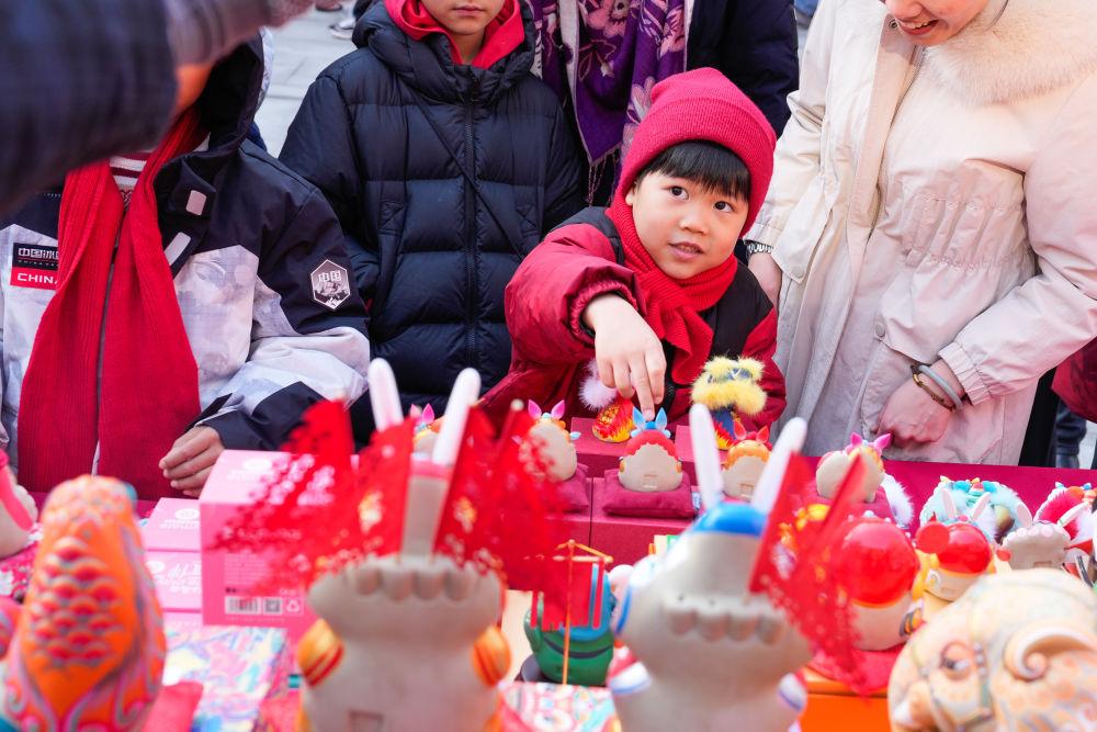 小朋友被北京非遺IP兔兒爺泥塑吸引。