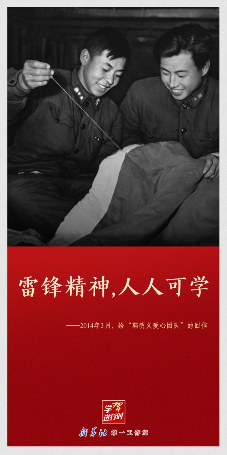 【學(xué)習(xí)進行時】“雷鋒精神永不過時”“讓學(xué)雷鋒活動融入日常、化作經(jīng)常”“雷鋒精神,人人可學(xué)”……黨的十八大以來,習(xí)近平總書記多次動情地談到雷鋒精神。在學(xué)雷鋒紀念日到來之際,讓我們一起重溫習(xí)近平總書記關(guān)于雷鋒精神的重要論述。