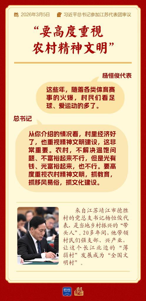 總書記強(qiáng)調(diào):“從你介紹的情況看,村里經(jīng)濟(jì)好了,也重視精神文明建設(shè),這非常重要。農(nóng)村,不解決溫飽問題、不富裕起來不行,但是光有錢、光富裕起來,也不行。要高度重視農(nóng)村精神文明,抓教育,抓移風(fēng)易俗,抓文化建設(shè)。”