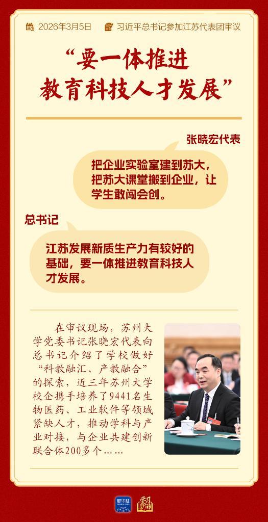 張曉宏代表來自蘇州大學(xué),向總書記介紹了學(xué)校推進(jìn)“科教融匯、產(chǎn)教融合”的探索:“把企業(yè)實驗室建到蘇大,把蘇大課堂搬到企業(yè),讓學(xué)生敢闖會創(chuàng)。”近三年校企攜手培養(yǎng)了9441名生物醫(yī)藥、工業(yè)軟件等領(lǐng)域緊缺人才,推動學(xué)科與產(chǎn)業(yè)對接,與企業(yè)共建創(chuàng)新聯(lián)合體200多個……