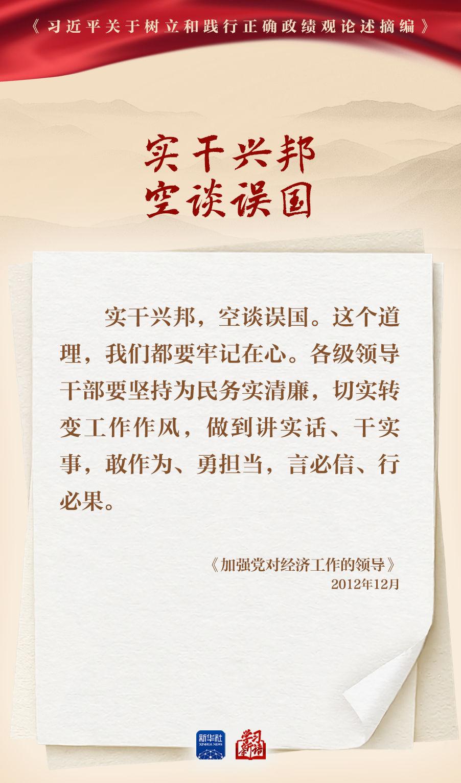 樹立和踐行正確政績觀學(xué)習(xí)教育正在全黨開展。真抓實(shí)干,是共產(chǎn)黨人的鮮明品格,也是成事之道。我們選取《習(xí)近平關(guān)于樹立和踐行正確政績觀論述摘編》一書中的相關(guān)重要論述,一起學(xué)習(xí)領(lǐng)會(huì)。