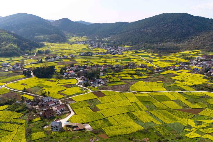 3月28日拍攝的漢中市南鄭區(qū)陽春鎮(zhèn)陳村的油菜花海(無人機照片)。新華社記者 鄒競一 攝