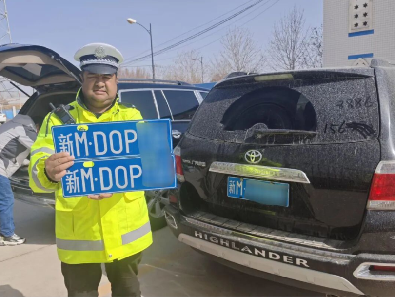 接警后,庫爾勒市公安局交管大隊西尼爾中隊中隊長尹良軍立即與周邊民警趕赴現(xiàn)場,固定證據(jù)后,民警將陳某控制,當(dāng)場查獲偽造的機(jī)動車號牌。