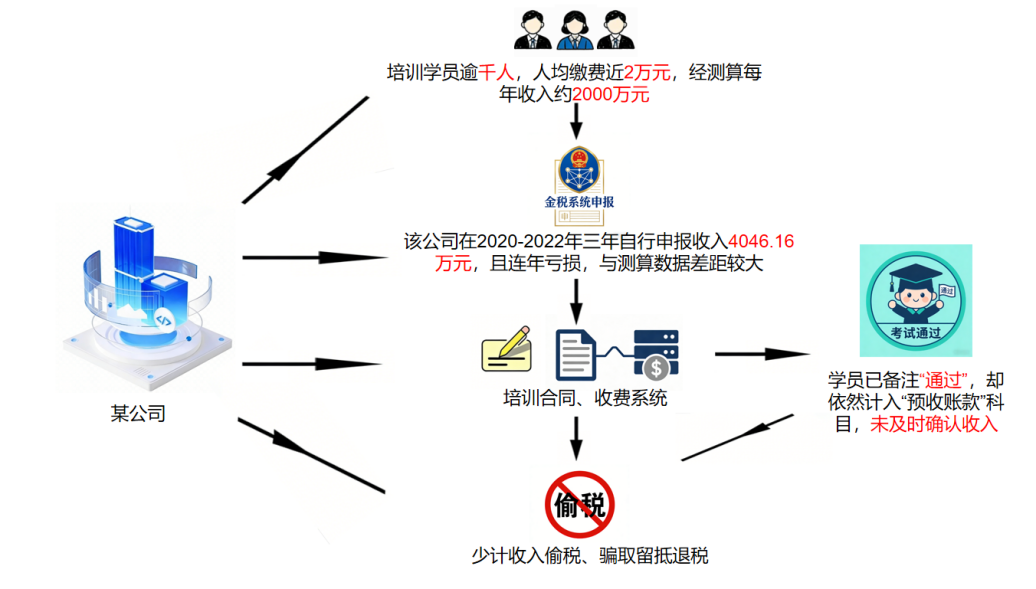 檢查人員通過(guò)公司報(bào)名收費(fèi)系統(tǒng)看到,名單中明明大量學(xué)員已備注“通過(guò)”,卻依然計(jì)在“預(yù)收賬款”科目,未及時(shí)確認(rèn)收入,同時(shí),企業(yè)仍對(duì)因未確認(rèn)收入形成的7.91萬(wàn)元增值稅留抵稅額申請(qǐng)退稅,存在騙取留抵退稅問題。