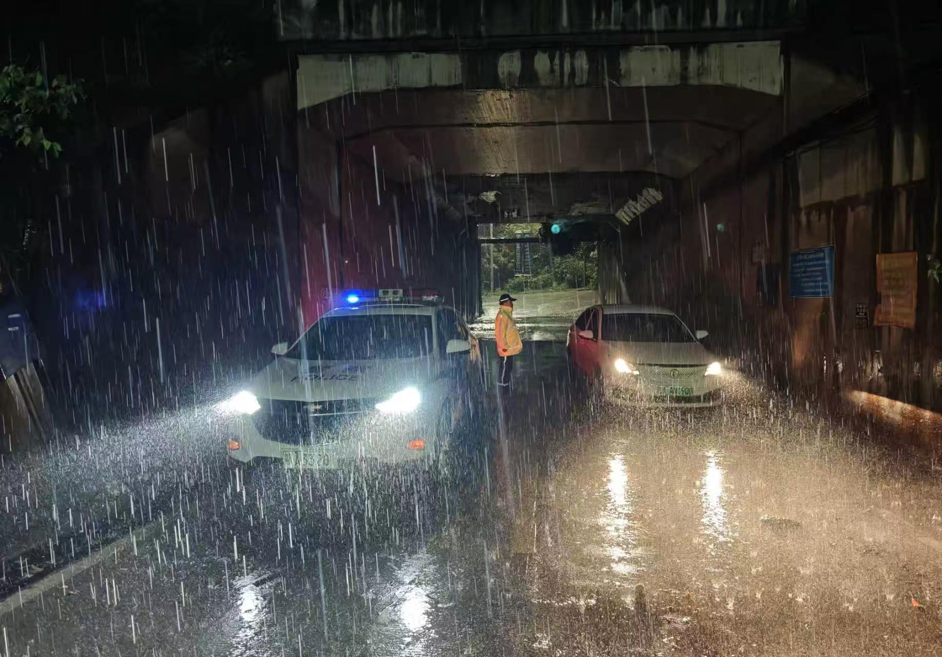 武漢市江夏區(qū)交通管理大隊于9日4時許全員出動,提前抵達(dá)武昌大道沿線涵洞開展值守巡查,實時監(jiān)測積水情況,及時提醒過往車輛謹(jǐn)慎通行。