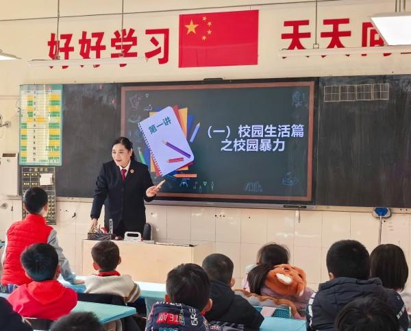 圖為檢察官劉艷麗在普法課堂上引導(dǎo)孩子們對(duì)校園欺凌和網(wǎng)絡(luò)犯罪說“不”,讓孩子們在互動(dòng)中知敬畏、明底線、懂自護(hù)。