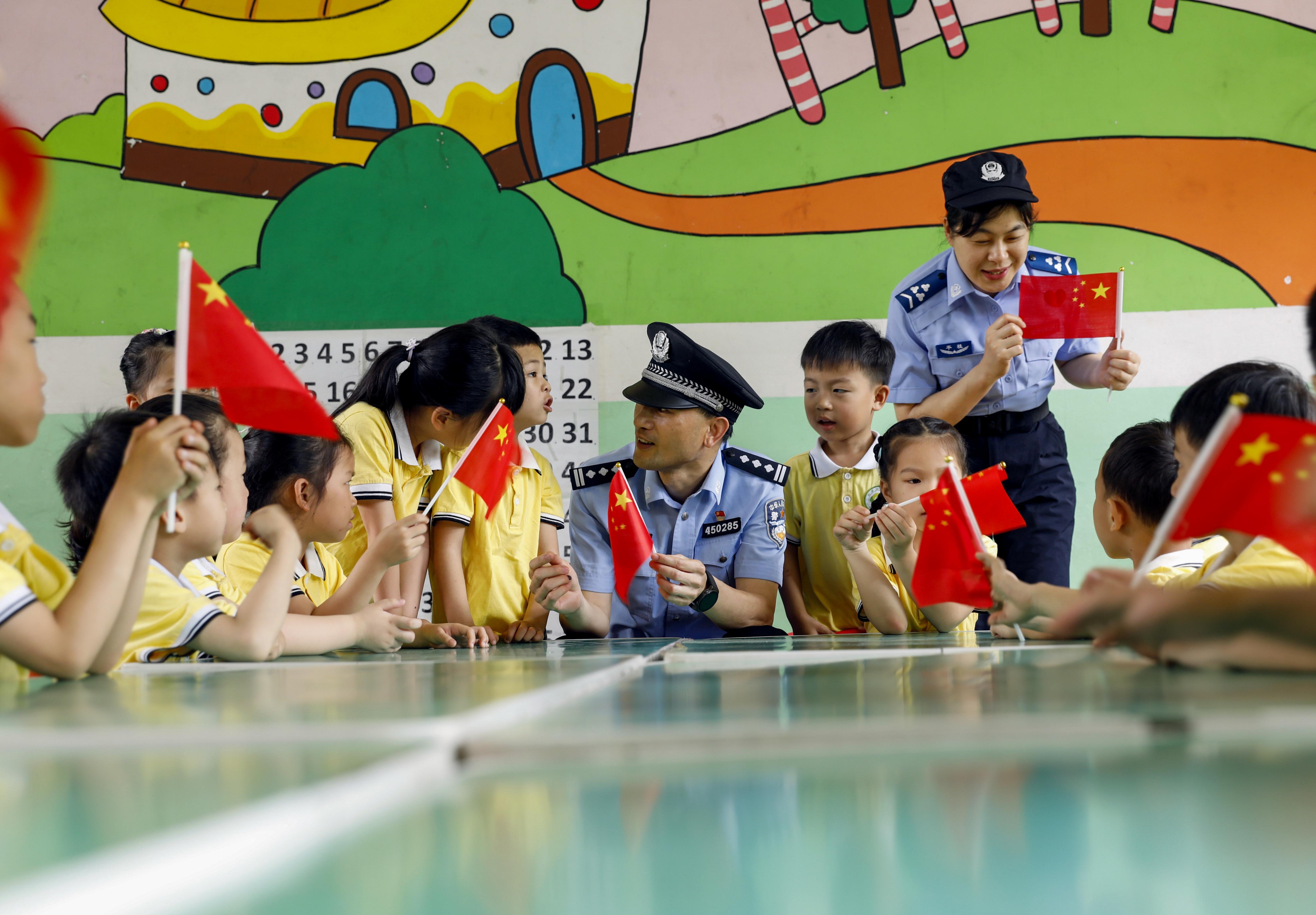 4月13日,廣西壯族自治區(qū)賀州市公安局平桂分局民輔警走進轄區(qū)幼兒園開展國家安全宣傳教育活動,通過游戲互動等趣味形式,將愛國與安全的種子播撒進孩子們的心田。