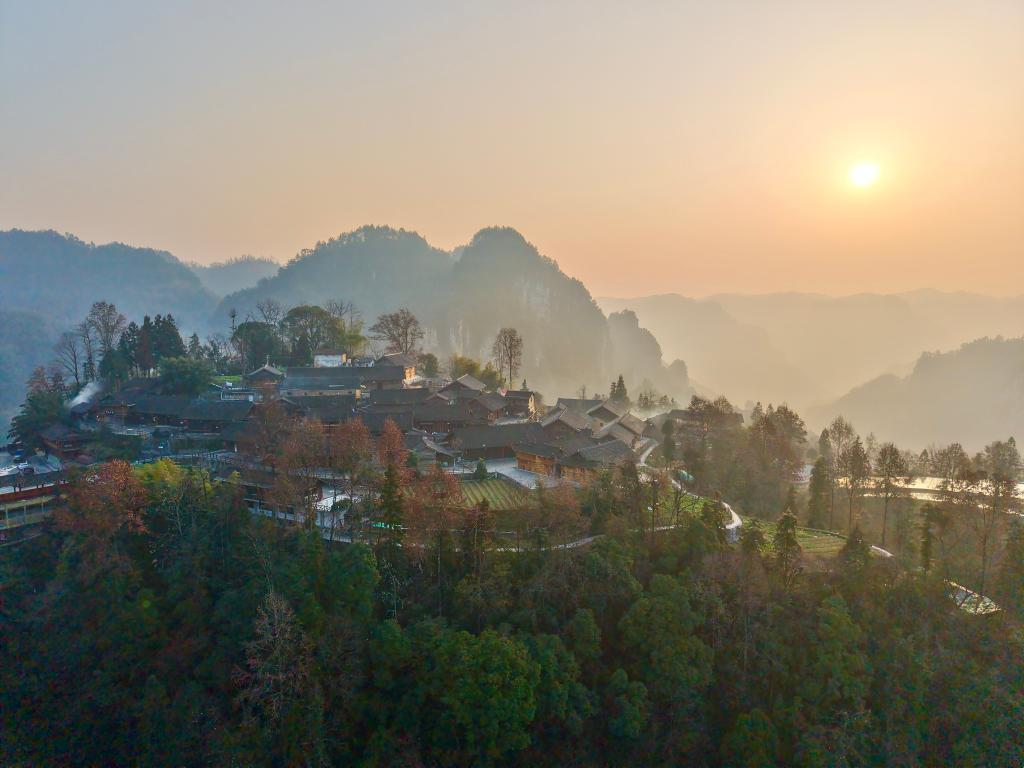 朝陽在十八洞村升起。新華社記者 戴斌 攝