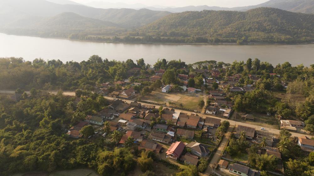 老撾瑯勃拉邦省瑯勃拉邦市聽松村全貌(無人機照片)。新華社發(fā) 杜大鵬 攝