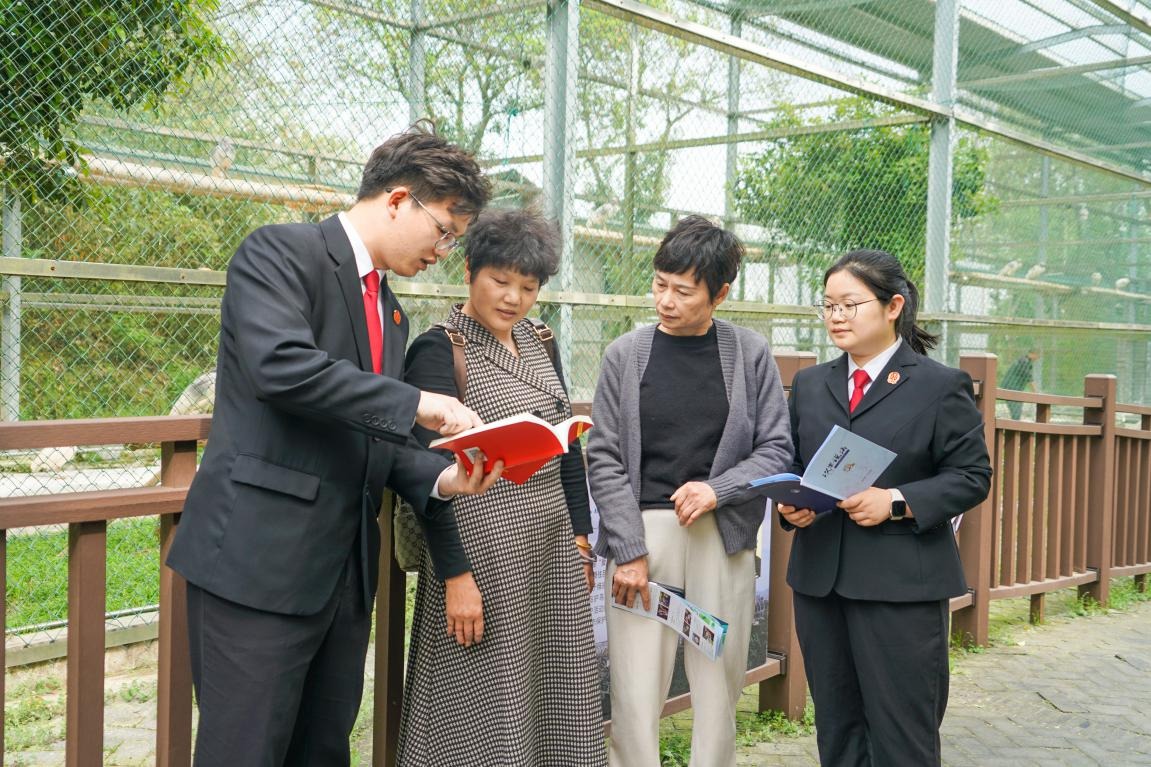 圖為干警圍繞生態(tài)環(huán)境法典向游客普及鳥類保護(hù)相關(guān)知識。