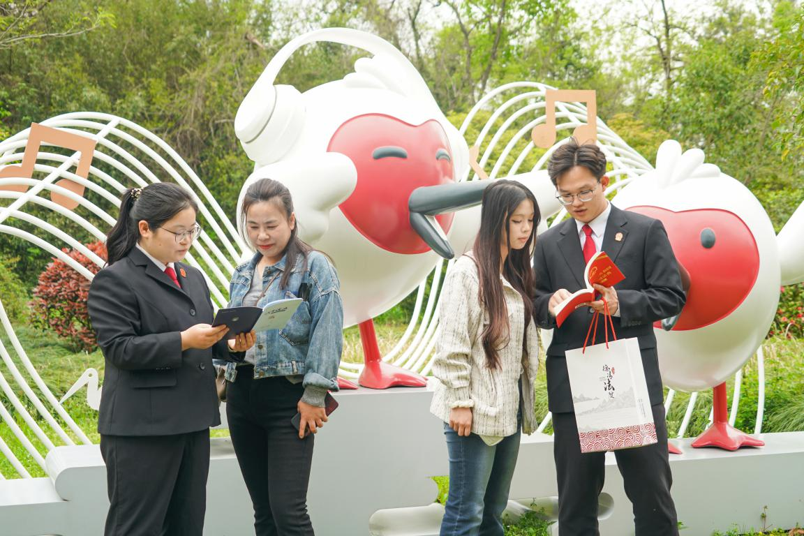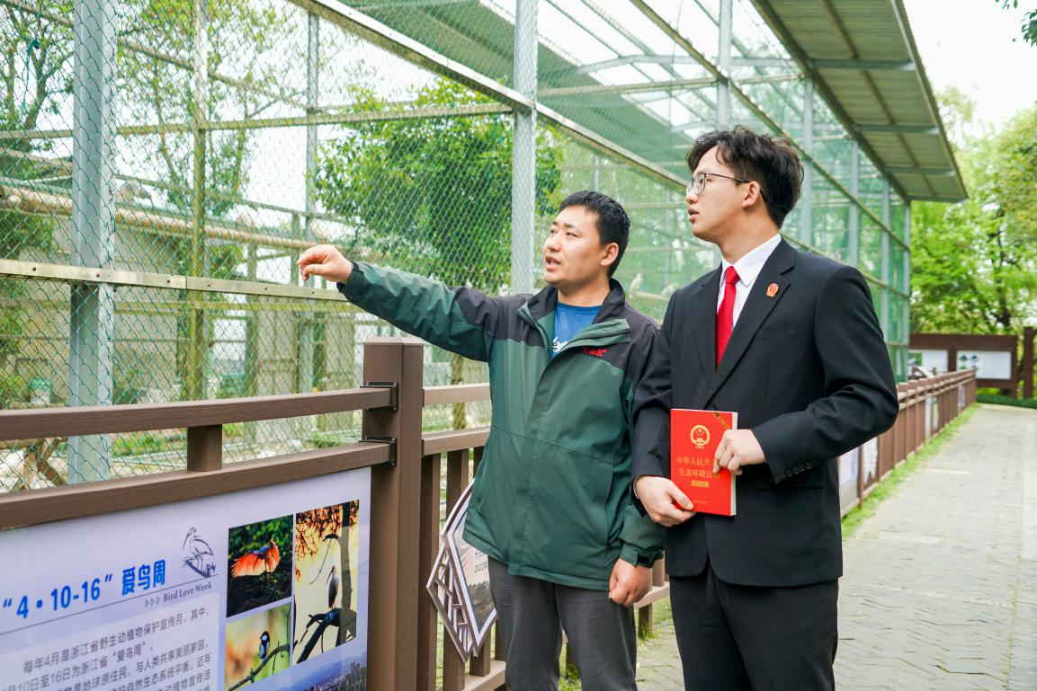 浙江省“愛鳥周”來臨之際,浙江省德清縣人民法院干警走進(jìn)下渚湖濕地公園開展生態(tài)環(huán)境法典普法宣傳活動?;顒又?,干警來到朱鹮保護(hù)基地,向工作人員了解國家一級保護(hù)動物朱鹮的棲息地與繁育情況。同時,圍繞生態(tài)環(huán)境法典中鳥類保護(hù)的相關(guān)規(guī)定,向游客解讀法律條文,講解鳥類保護(hù)法律知識,旨在提升公眾生態(tài)法治意識,護(hù)航鳥類家園。