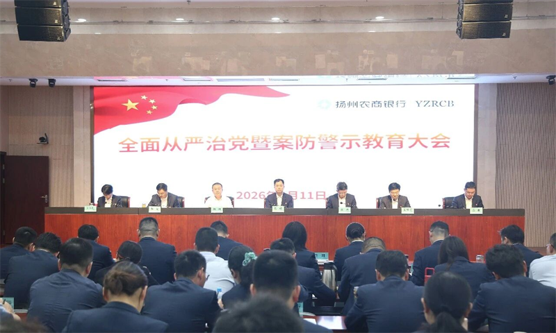 為壓緊壓實(shí)管黨治黨政治責(zé)任,堅(jiān)定不移推進(jìn)黨風(fēng)廉政建設(shè)工作,近日,江蘇揚(yáng)州農(nóng)村商業(yè)銀行召開2026年全面從嚴(yán)治黨暨案防警示教育大會(huì)。總行領(lǐng)導(dǎo)班子成員、全體中層管理人員及支行重點(diǎn)崗位代表參加會(huì)議。