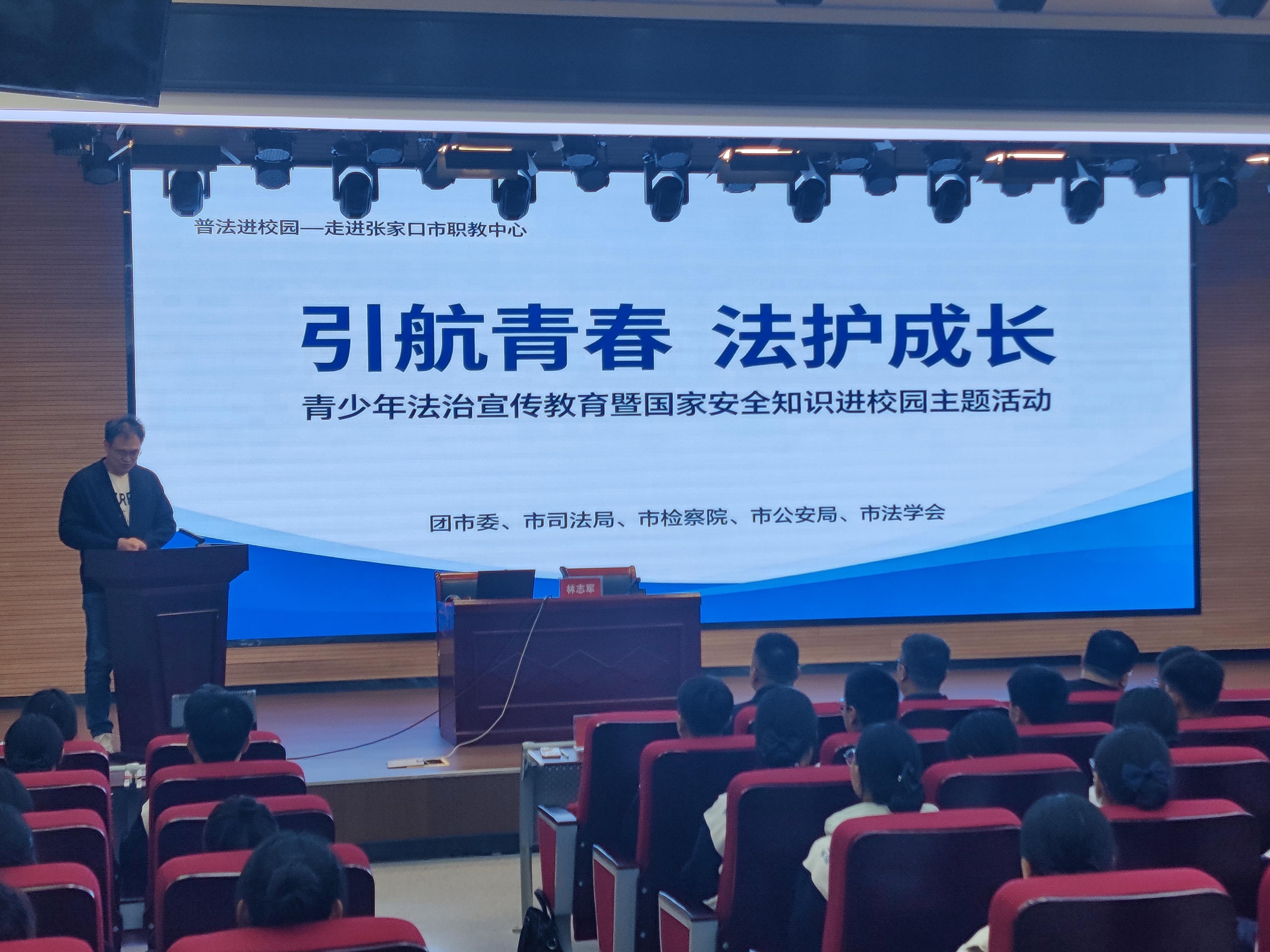 4月14日,多部門聯(lián)合走進(jìn)張家口市職教中心,舉辦“引航青春 法護(hù)成長”青少年法治宣傳教育暨國家安全知識進(jìn)校園活動。市檢察院第九檢察部主任林志軍結(jié)合青少年認(rèn)知特點,通過真實案例剖析“校園間諜陷阱”“網(wǎng)絡(luò)信息保護(hù)”等風(fēng)險點,引導(dǎo)青少年知敬畏、存戒懼、守底線。