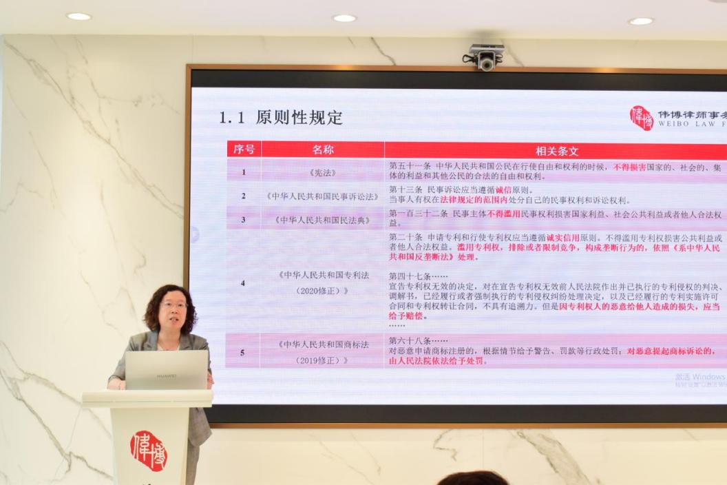 2025年9月5日,由北京市偉博律師事務(wù)所(以下簡稱“偉博律所”)主辦的“知識產(chǎn)權(quán)惡意訴訟疑難問題與實(shí)務(wù)研究”講座在北京CBD陽光金融中心偉博律所北京總部舉辦。偉博律所高級合伙人范秀霞律師擔(dān)任主講人,從法律規(guī)定、認(rèn)定標(biāo)準(zhǔn)、司法實(shí)踐、國際比較及實(shí)務(wù)建議五個方面系統(tǒng)梳理了惡意訴訟的現(xiàn)狀與挑戰(zhàn)。