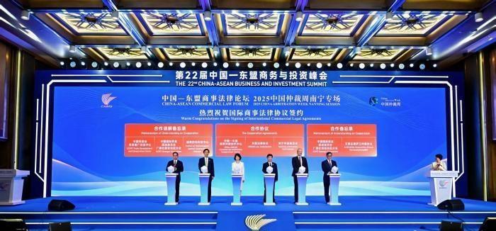 第22屆中國—東盟商務(wù)與投資峰會9月17日—21日在廣西南寧召開,期間中國—東盟商事法律論壇在南寧舉辦?;顒又?,中華人民共和國二級大法官、廣西壯族自治區(qū)高級人民法院院長黃海龍,中國國際貿(mào)易促進(jìn)委員會副會長李慶霜等嘉賓見證系列合作成果的達(dá)成。