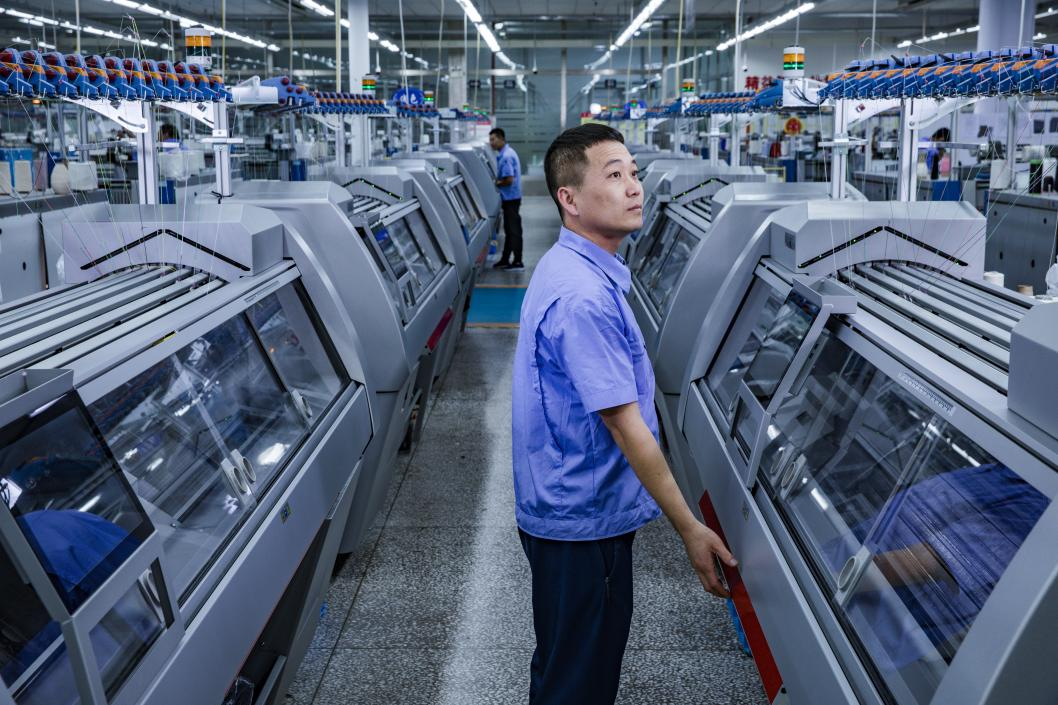 圖為鄂爾多斯集團羊絨產(chǎn)品編織車間。