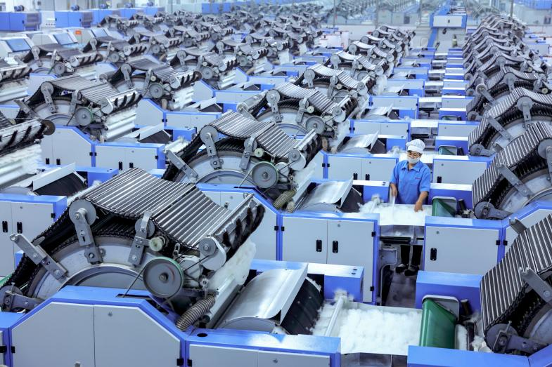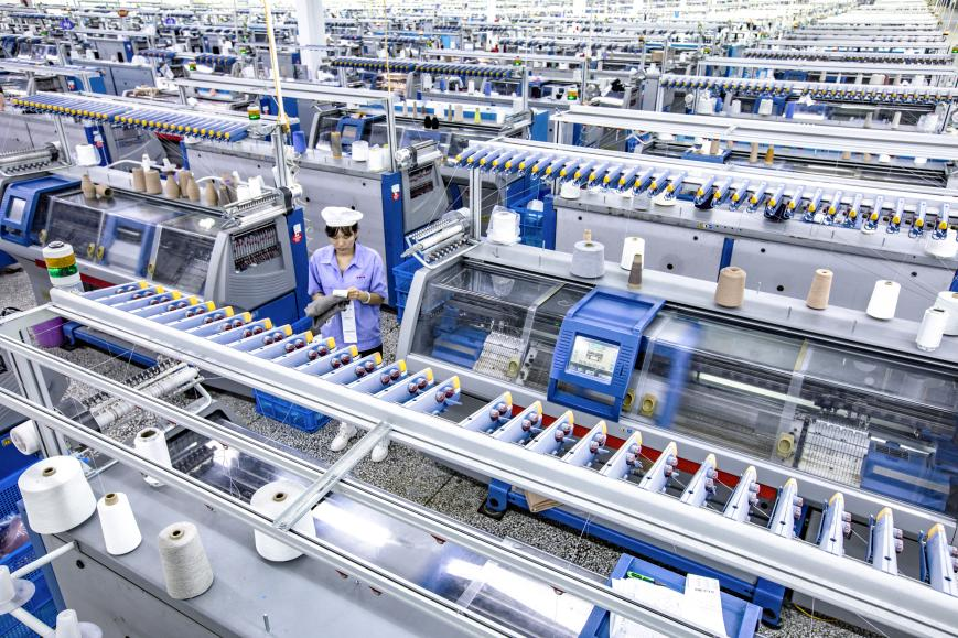 圖為鄂爾多斯集團(tuán)羊絨產(chǎn)品編織車間。