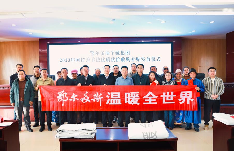 圖為鄂爾多斯羊絨集團(tuán)阿拉善羊絨優(yōu)質(zhì)優(yōu)價(jià)收購補(bǔ)貼發(fā)放儀式。