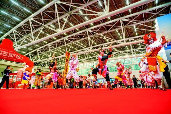 圖為2025年12月21日,雙望鳳悅英歌隊(duì)在廣州文化交易會現(xiàn)場演出。 受訪者供圖