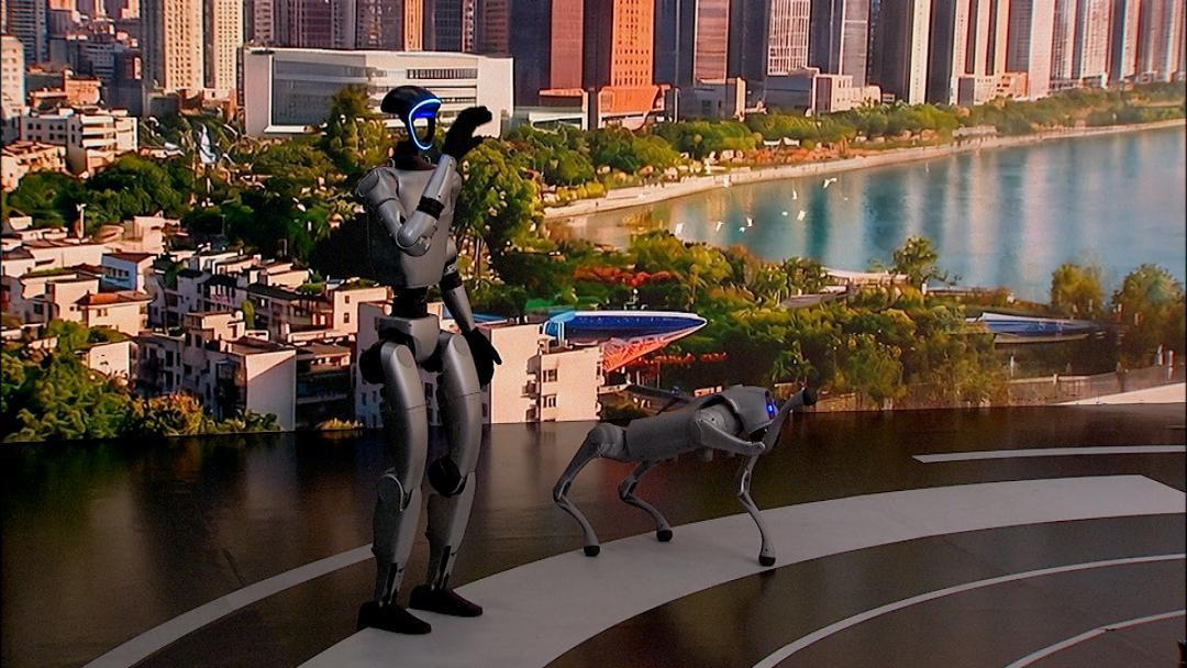 圖為節(jié)目現(xiàn)場展示的機器人及機器狗。