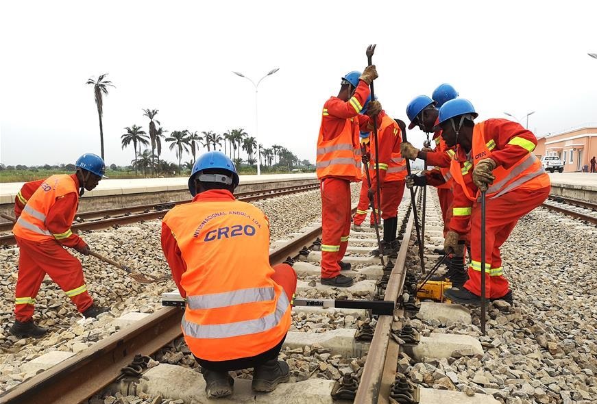 8月2日,在安哥拉洛比托鐵路項(xiàng)目現(xiàn)場(chǎng),中國中鐵二十局本格拉鐵路項(xiàng)目員工在進(jìn)行鐵路維護(hù)。新華社發(fā)(柳志攝)