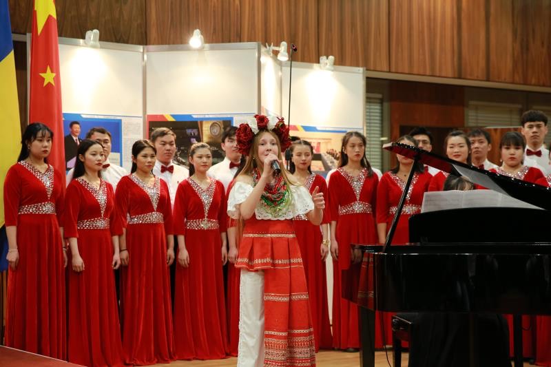 招待會在中國留學生藝術(shù)團合唱隊用中烏雙語演唱的兩國國歌聲中拉開帷幕,現(xiàn)場觀眾對此報以熱烈掌聲,從一開始就把招待會氣氛推向了高潮。