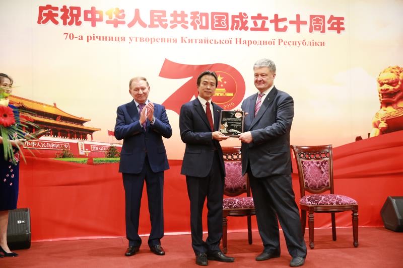 9月24日,中國駐烏克蘭大使館在基輔國際會展中心舉行國慶招待會,熱烈慶祝中華人民共和國成立70周年華誕。烏克蘭前總統(tǒng)庫奇馬、波羅申科、副外長博德納爾、博若克、國安委副秘書達尼洛夫、基礎(chǔ)設(shè)施部部長克雷克里、烏議會、政黨、軍隊代表及烏社會各界友人、外國駐烏使節(jié)、中國駐烏新聞機構(gòu)、中資企業(yè)、華僑華人、留學生代表等近900人出席招待會。