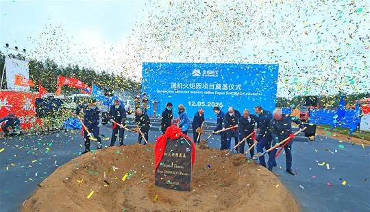5月12日,在白俄羅斯首都明斯克郊區(qū)的中白工業(yè)園,中白雙方代表參加國機火炬園項目奠基儀式。 新華社發(fā)(任科夫攝)