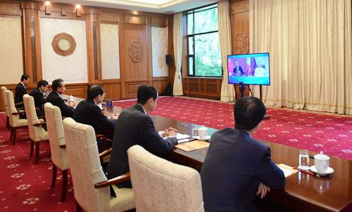 國務委員兼外長王毅同菲律賓外長洛欽舉行視頻會談。