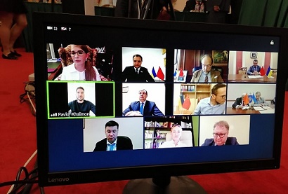 9月22日,我駐烏克蘭使館舉行“云”招待會。在防控疫情的特殊時刻,中國駐烏克蘭大使范先榮以視頻連線方式,邀請烏政要和友人齊聚云端,共同慶祝中華人民共和國成立71周年。烏外交部副部長葉寧、經(jīng)貿(mào)與農(nóng)業(yè)部副部長卡奇卡、教育與科學(xué)部副部長維特連科、衛(wèi)生部副部長伊瓦先科、內(nèi)務(wù)部副部長科瓦爾丘克、青年與體育部副部長扎爾達(dá)克、人民公仆黨議會黨團(tuán)主席阿拉哈米亞、祖國黨主席季莫申科、最高拉達(dá)烏中議員友好小組烏方主席哈里蒙、最高拉達(dá)跨黨派“一帶一路”議員友好小組輪值主席喬爾內(nèi)、國家科學(xué)院副院長扎戈羅德尼、企業(yè)家代表、學(xué)界友好人士等出席招待會。