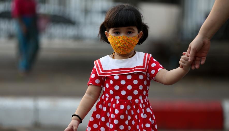 12月7日,在緬甸仰光,一名兒童戴著口罩外出。新華社發(fā)(吳昂 攝)
