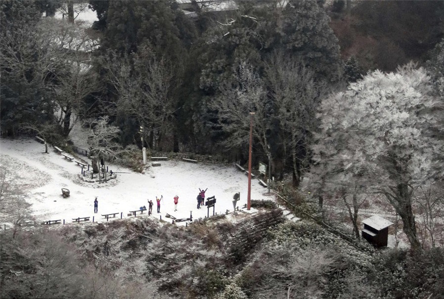 人民網(wǎng)訊 當(dāng)?shù)貢r(shí)間12月15日,日本金剛山迎來今冬初雪,比去年早了8天。