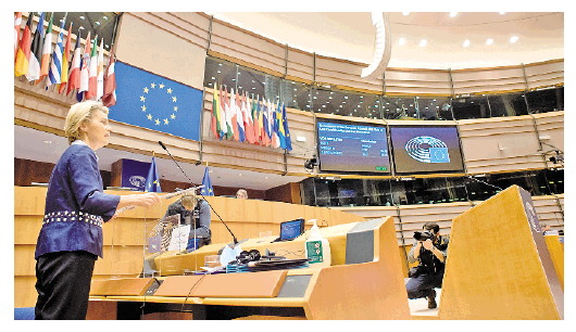 “2021年將是科技巨頭的監(jiān)管年。它們現(xiàn)在已經(jīng)是一個成熟的行業(yè)了,而不再只是閃閃發(fā)光的年輕創(chuàng)業(yè)公司?!泵绹鴳?zhàn)略與國際問題研究中心高級副總裁、技術政策項目主任詹姆斯·安德魯·劉易斯評論說:“我們過去常說,銀行‘大而不能倒’,但銀行其實受到高度監(jiān)管?,F(xiàn)在,對這些科技巨頭的監(jiān)管也應朝著這個方向發(fā)展?!?br/> 歐盟今年2月啟動《數(shù)字服務法案》和《數(shù)字市場法案》立法工作。歐盟領導人就此進行了數(shù)輪磋商。12月15日,歐盟委員會公布了《數(shù)字服務法案》及《數(shù)字市場法案》草案。圖①為歐盟委員會領導人及法、德等歐洲主要國家領導人在布魯塞爾進行磋商。圖②為歐盟委員會主席馮德萊恩。