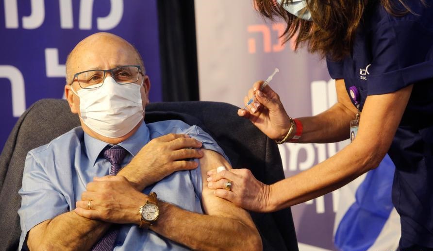 12月19日,在以色列拉馬特甘的謝巴醫(yī)療中心,一名醫(yī)務(wù)人員接種新冠疫苗。