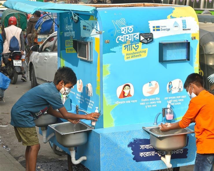 12月21日,在孟加拉國(guó)達(dá)卡,兩名兒童在一處移動(dòng)洗手設(shè)施洗手。 孟加拉國(guó)衛(wèi)生部門(mén)20日公布的數(shù)據(jù)顯示,該國(guó)新冠累計(jì)確診病例超50萬(wàn)例。 新華社發(fā)