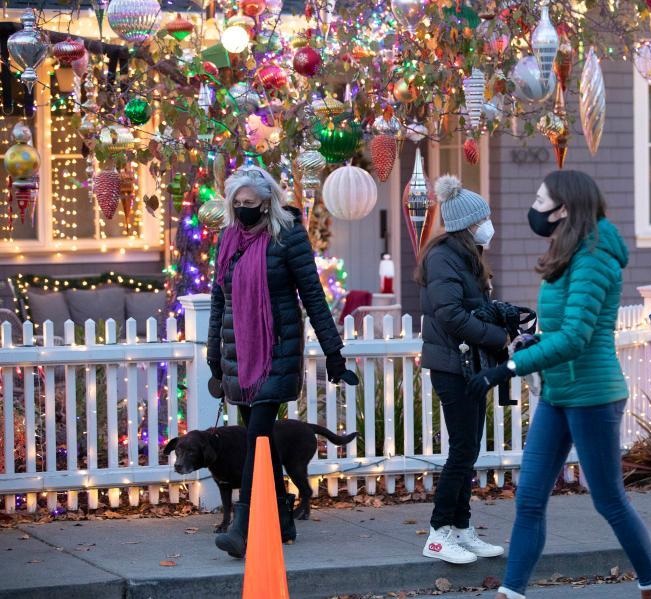 12月23日,人們在美國加利福尼亞州圣卡洛斯的社區(qū)觀賞圣誕裝飾。新華社發(fā)(李建國攝)