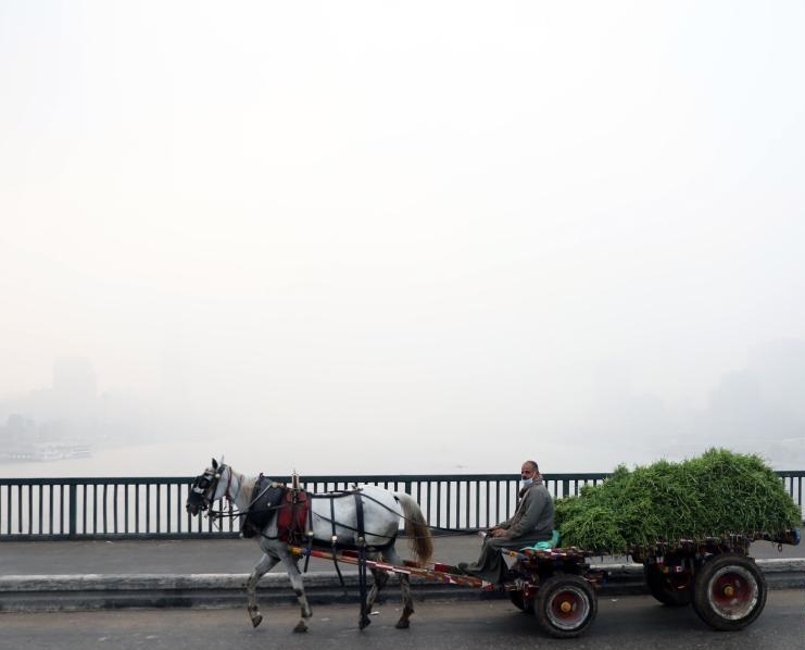1月4日,在埃及首都開羅,馬車在晨霧中駛過。新華社發(fā)(艾哈邁德·戈馬攝)