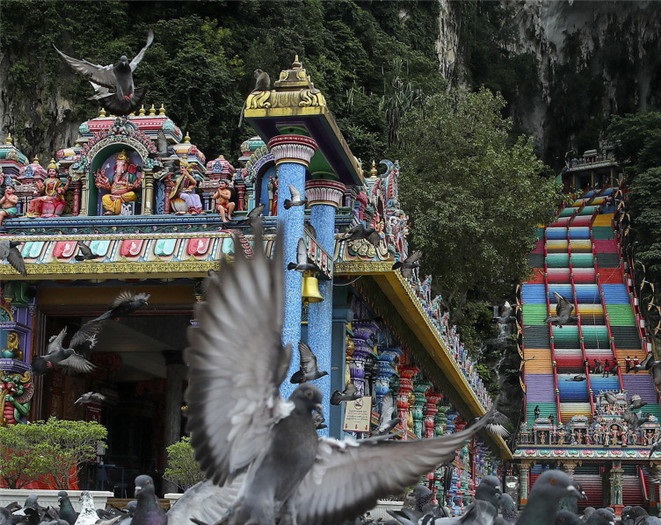 人民網(wǎng)訊 當?shù)貢r間2021年1月6日,馬來西亞吉隆坡,著名地標之一、印度教圣地黑風洞游客稀少,階梯色彩繽紛如彩虹般絢爛。