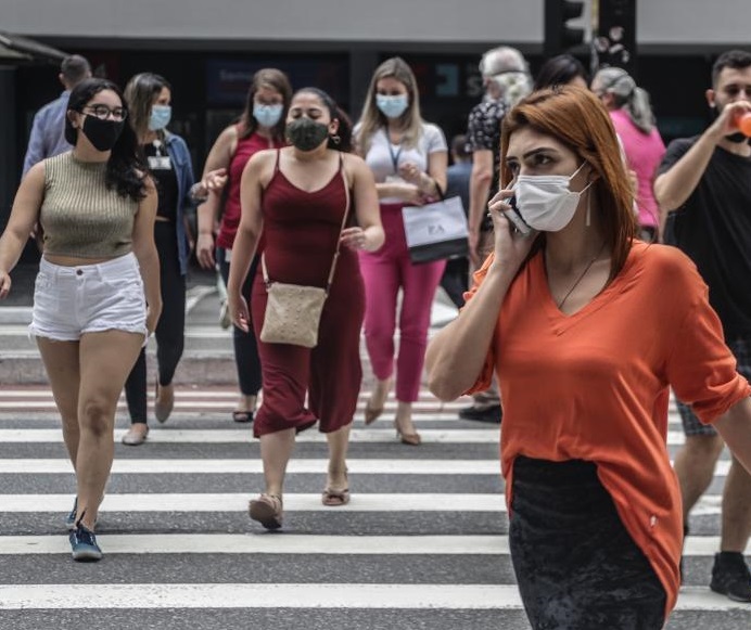 1月11日,人們在巴西圣保羅街頭過馬路。新華社發(fā)(拉赫爾·帕特拉索 攝)