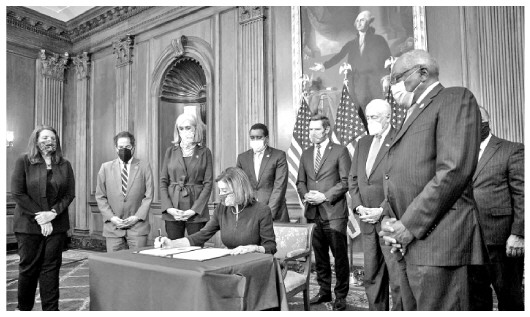 當(dāng)?shù)貢r間1月11日,鑒于6日發(fā)生的國會騷亂事件,眾議院民主黨人正式提交針對特朗普的彈劾條款草案。彈劾條款指控特朗普“煽動叛亂”,要求對其進行“彈劾和審判,并免除其總統(tǒng)職務(wù),取消其擁有的相關(guān)榮譽、信用和有酬職位資格”。13日下午,美國國會眾議院兩黨議員經(jīng)過辯論后以232票贊成、197票反對,通過了針對特朗普的彈劾案。眾議院全體民主黨人以及10名共和黨人投了贊成票。