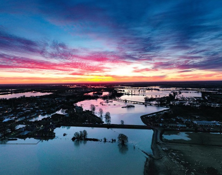 英國(guó)劍橋天空現(xiàn)火紅晚霞