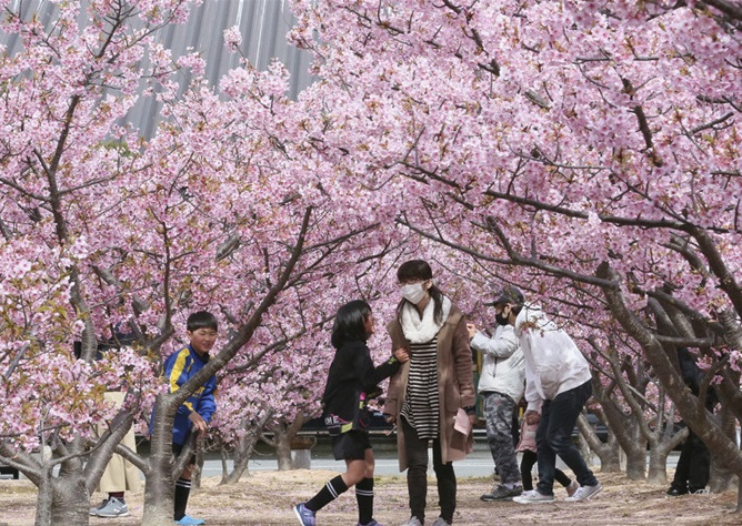 人民網(wǎng)訊 當(dāng)?shù)貢r間2月27日,日本山口縣,當(dāng)?shù)貦鸦ㄊ㈤_,美如畫卷。