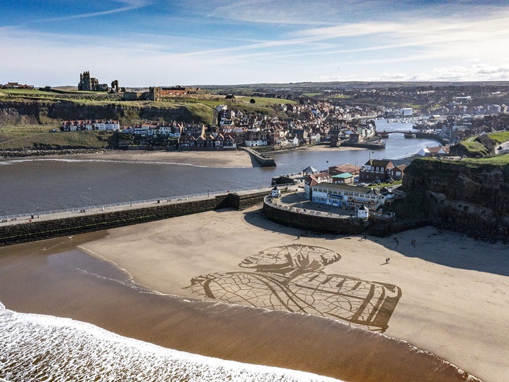 人民網(wǎng)訊 當(dāng)?shù)貢r(shí)間3月15日,英國惠特比,在世界水日來臨之前,水援助組織在惠特比海灘的沙灘上創(chuàng)作了一幅畫,畫中的孩子在漲潮的潮水旁提水,以強(qiáng)調(diào)氣候變化對人們獲取水的影響。