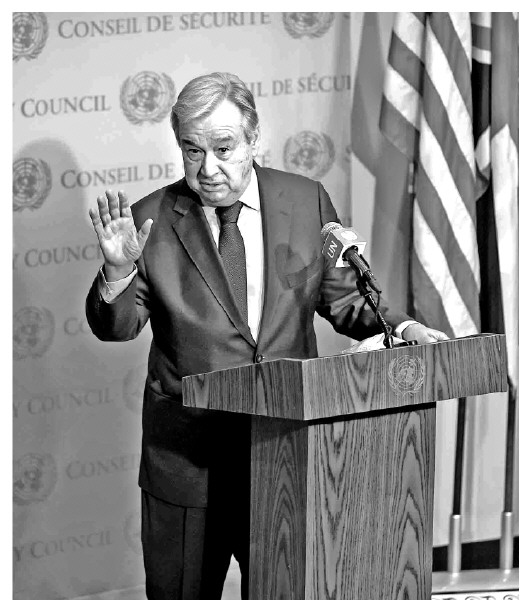 圖① 當?shù)貢r間3月10日,聯(lián)合國秘書長古特雷斯在聯(lián)合國總部舉行的敘利亞危機爆發(fā)10周年記者會上發(fā)表講話。 CFP供圖