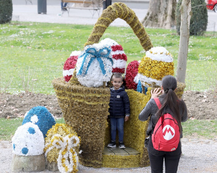 人民網(wǎng)訊 當(dāng)?shù)貢r(shí)間3月30日,為迎接復(fù)活節(jié)到來(lái),克羅地亞薩格勒布當(dāng)?shù)毓珗@街道上擺放各種精美裝飾物,市民紛紛駐足觀看。