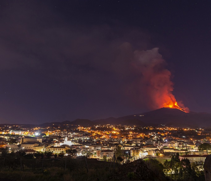 人民網(wǎng)訊 當?shù)貢r間4月1日,意大利西西里島,埃特納火山噴發(fā)。