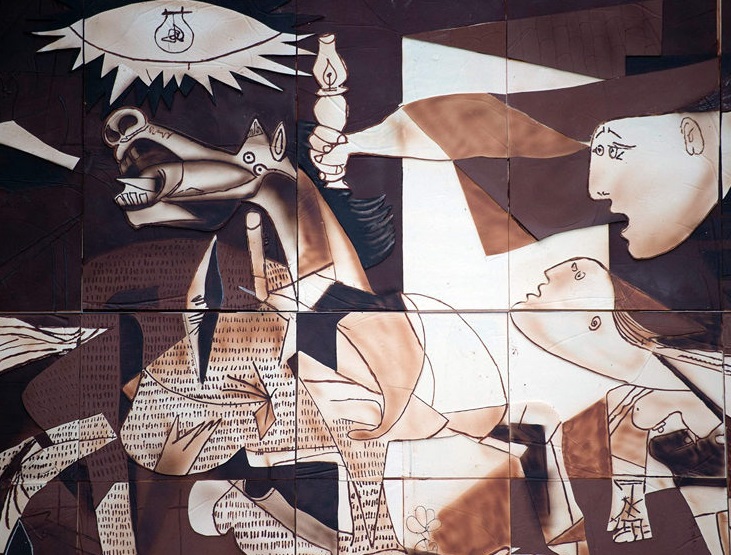 人民網(wǎng)訊 當(dāng)?shù)貢r(shí)間4月25日,西班牙北部巴斯克城鎮(zhèn)格爾尼卡,當(dāng)?shù)靥枪虆f(xié)會(huì)用巧克力一比一、全尺寸還原了世界名畫《格爾尼卡》,這幅巧克力復(fù)刻的世界名畫長7.76米,高3.49米,以紀(jì)念1937年法西斯納粹轟炸西班牙北部巴斯克的重鎮(zhèn)格爾尼卡。這幅巧克力藝術(shù)品將在西班牙多地展出。